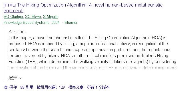 本期改进一个2024年发布于计算机一区期刊的徒步优化算法。目前该算法在谷歌学术统计的被引次数为129。