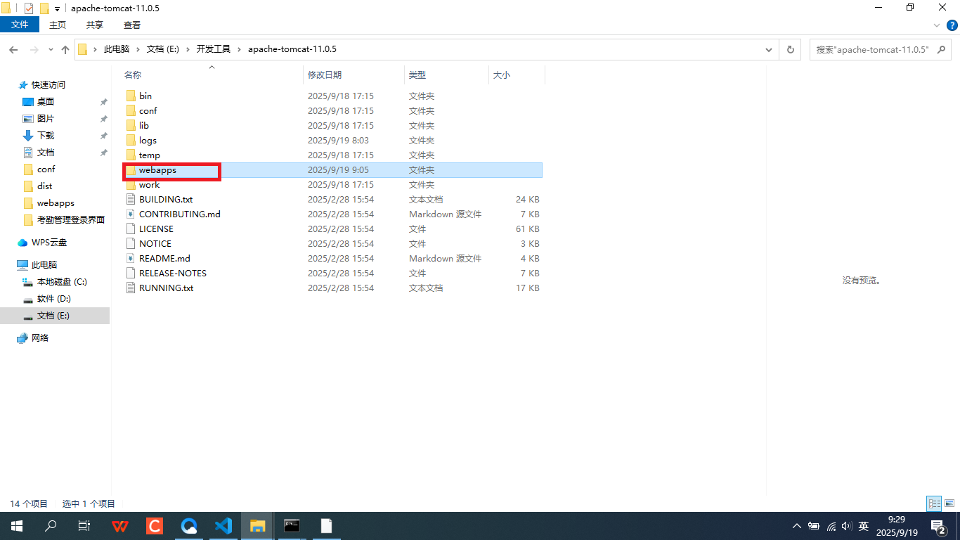 2、将打包好的war文件放到tomcat的根目录webapps目录下,初次下载完成后这个文件下的文件是可以删掉的。