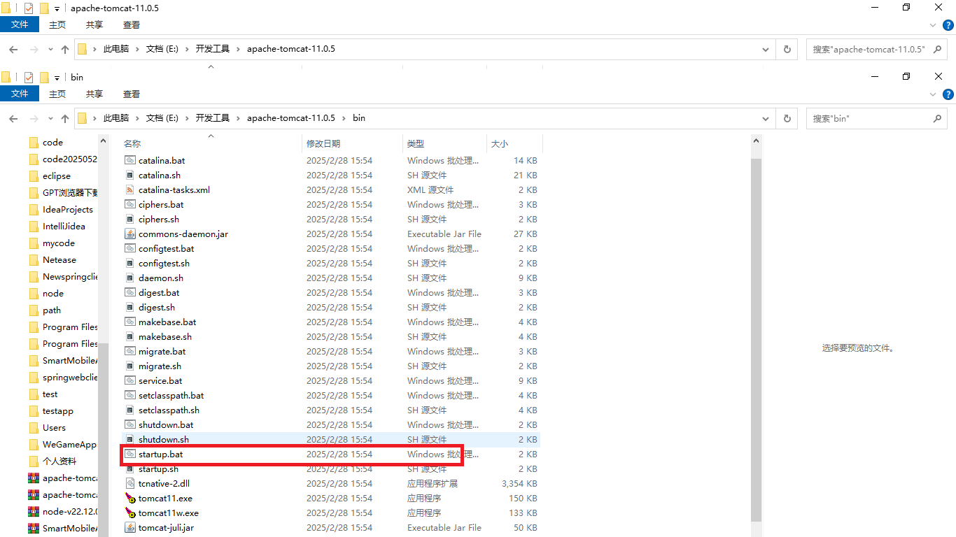 4、进入bin目录点击startup.bat启动tomcat