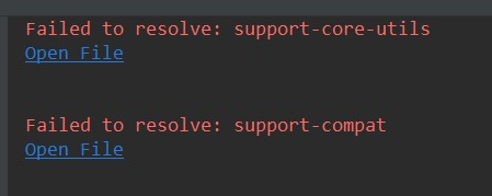 6.导入项目提示:Failed to resolve: support-core-utils Open File Failed to resolve: support-compat Open File