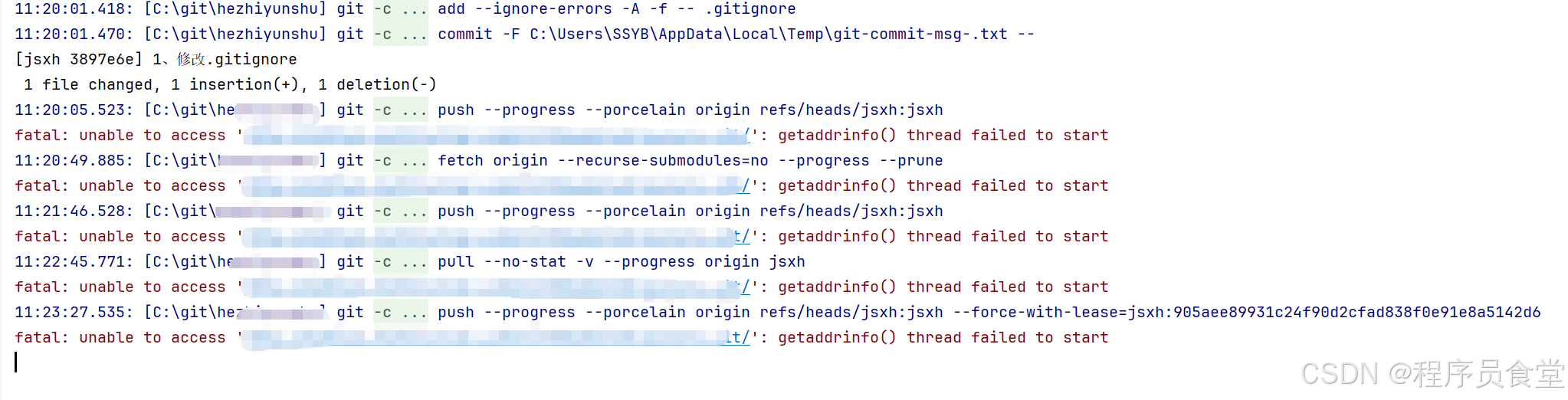 fatal: unable to access 'http://gitlab.XXXX.com/lteam/yang.git/': getaddrinfo() thread failed to start