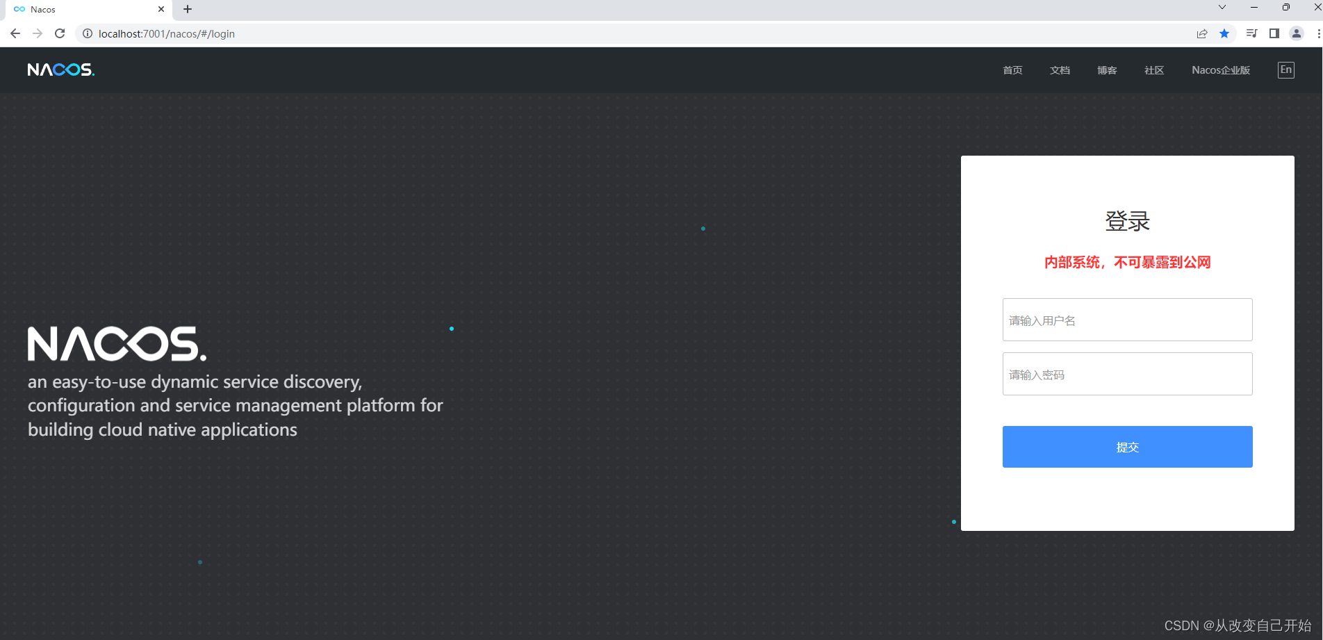 6、访问http://localhost:7001/nacos/,默认用户名密码:nacos/nacos