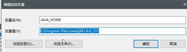 - 变量值为jdk的安装路径C:\Program Files\Java\jdk1.8.0_131
