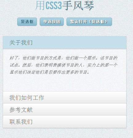 本文介绍了如何使用CSS3技术来美化复选框和创建手风琴效果。关键在于隐藏原生的checkbox或radio元素,利用label的:before和:after伪元素进行样式模拟,并通过:checked伪类控制选中状态。文章提供HTML结构和CSS代码示例,展示了具体实现过程。