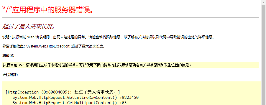 APS.NET MVC 上传文件出现 System.Web.HttpException: 超过了最大请求长度 这个问题
