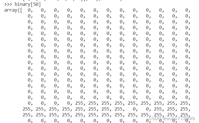 2.二值化数据如下: