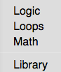 工具箱中的块可以按类别组织。这是两个类别(“控制”和“逻辑”),每个类别包含三个块: