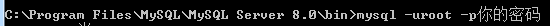 而后没有直接用mysql8.0下面的commond line client,而是在cmd的命令行下,进入安装目录的bin目录下输入: