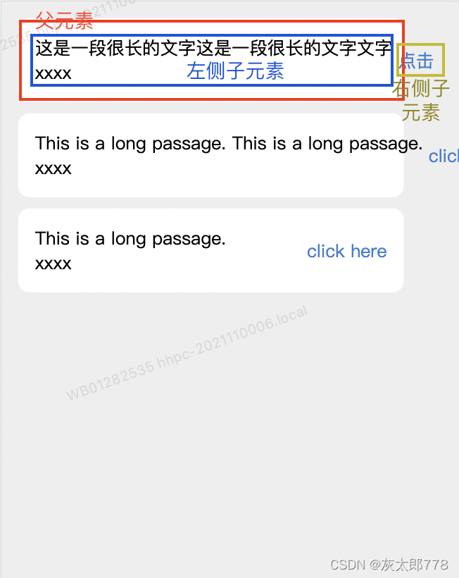 父元素设置 display: flex; 左侧子元素设置 white-space: nowrap; 并且设置超出为省略号,结果就如图所示,不仅左侧没有省略号展示,右侧还超出父元素展示了,左侧子元素并没有因为父元素设置了 flex 而被缩短。