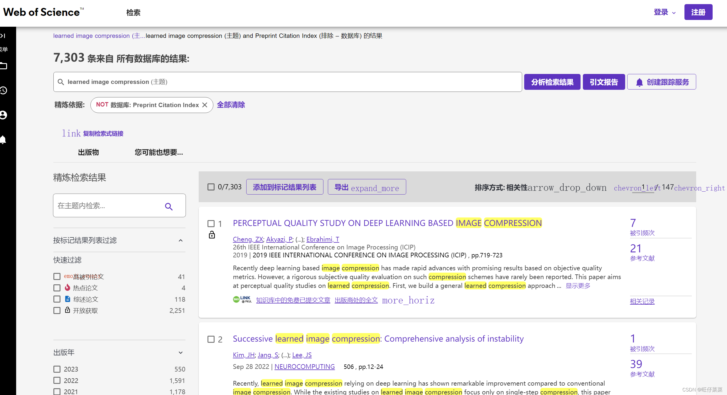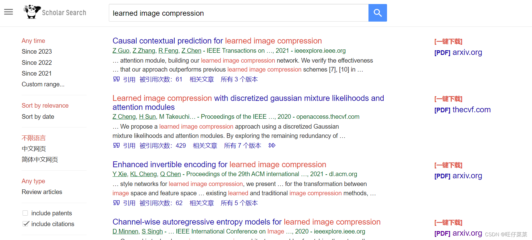 在左上角设置时间为2020-2023;可以看到搜出来的论文,首先看题目是否符合自己的研究方向,然后看引用量,引用量越高论文质量相对越好;再看看摘要,如果真的是自己所需要的论文,后面有pdf的可以直接下载,没有的去sci-hub上找;