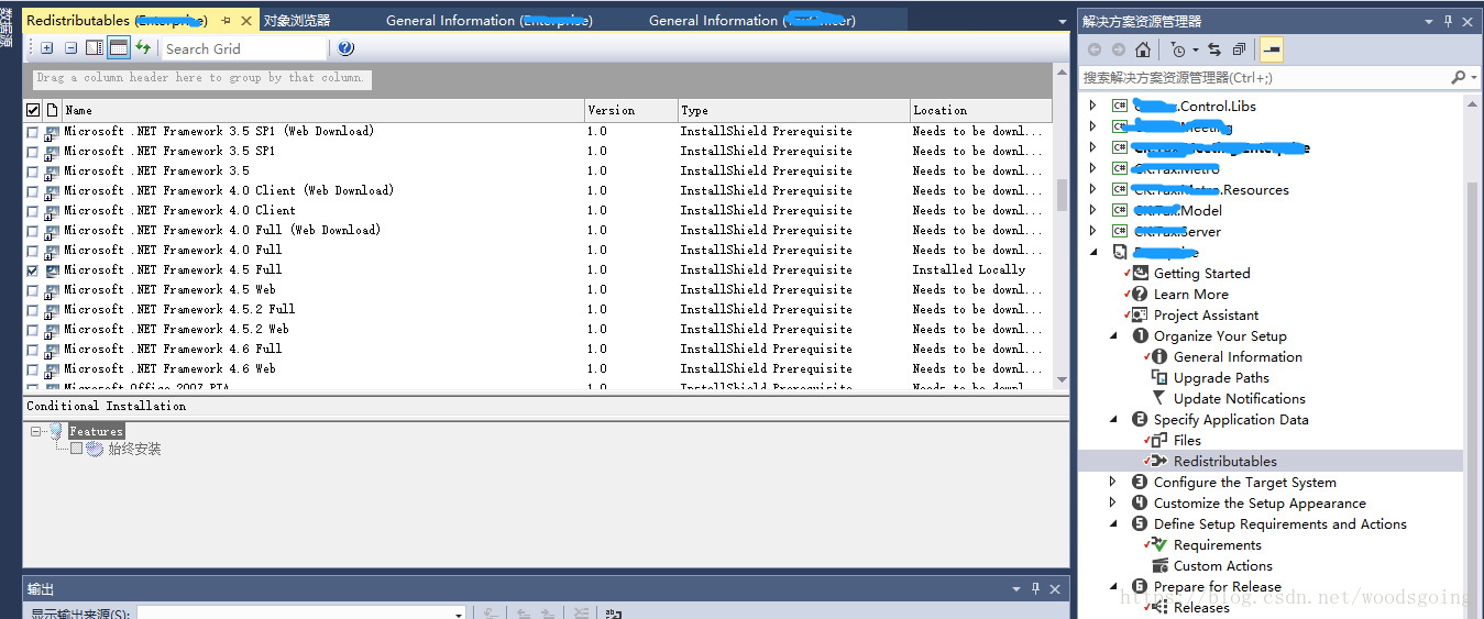 install shield里选择打包的.NetFramework要和项目属性里的目标框架保持一致。目标框架是可选的,和VS版本没有对应关系。
