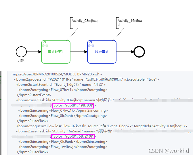 处理方式 每次改完颜色,js处理成 activiti:color就行 也能自动显示