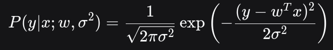 每个观测值 y 在给定 x 的条件下,围绕预测值 wTx呈正态分布