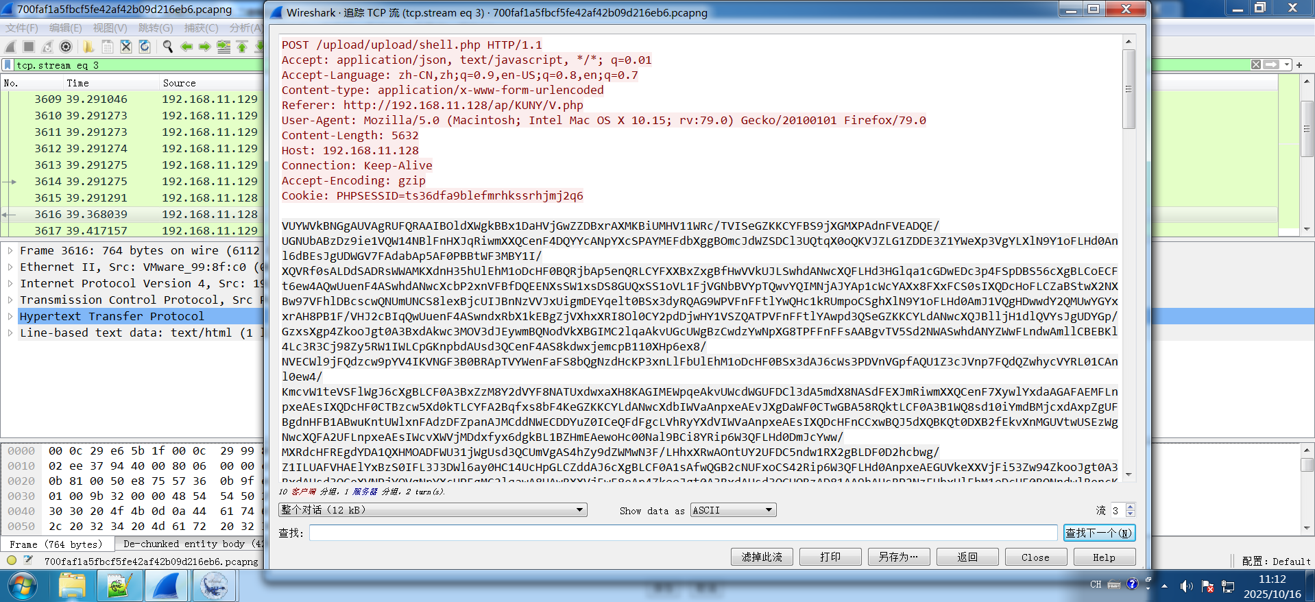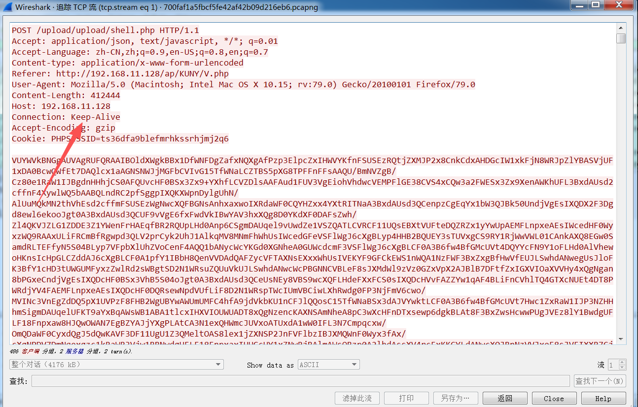 我们继续追踪流 观察流量特征 发现这是蚁剑的流量特征