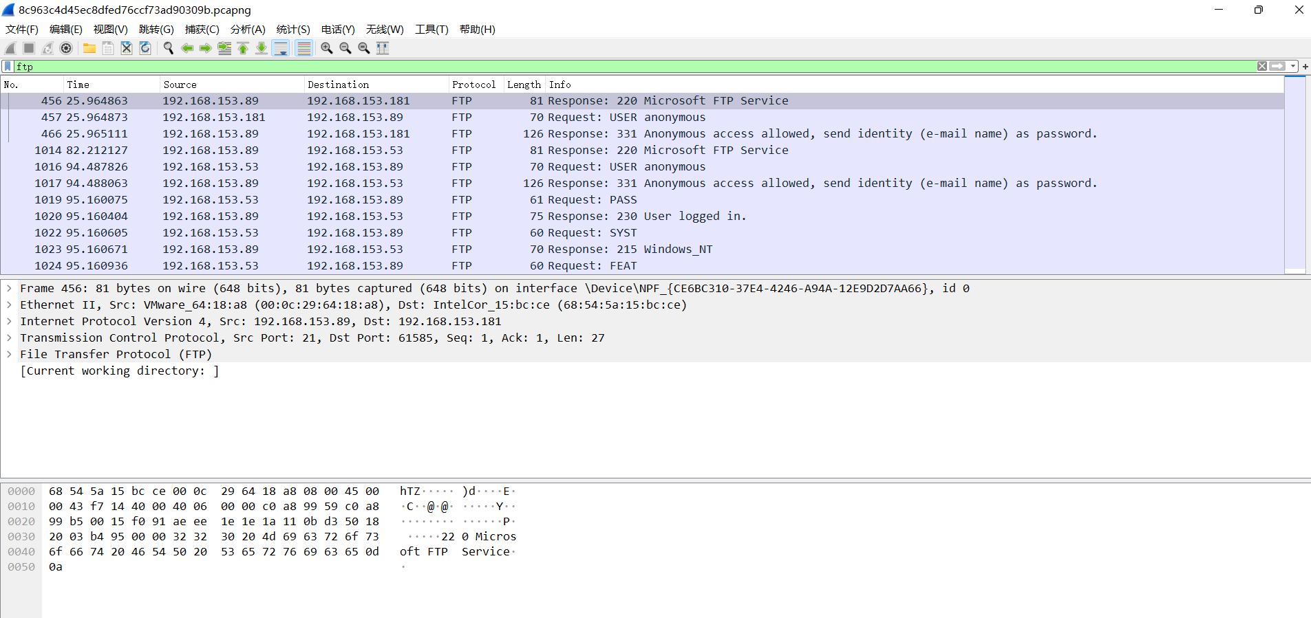 我们抓一下ftp的包