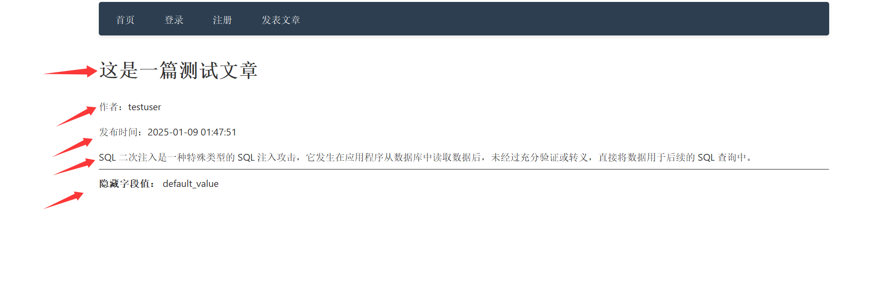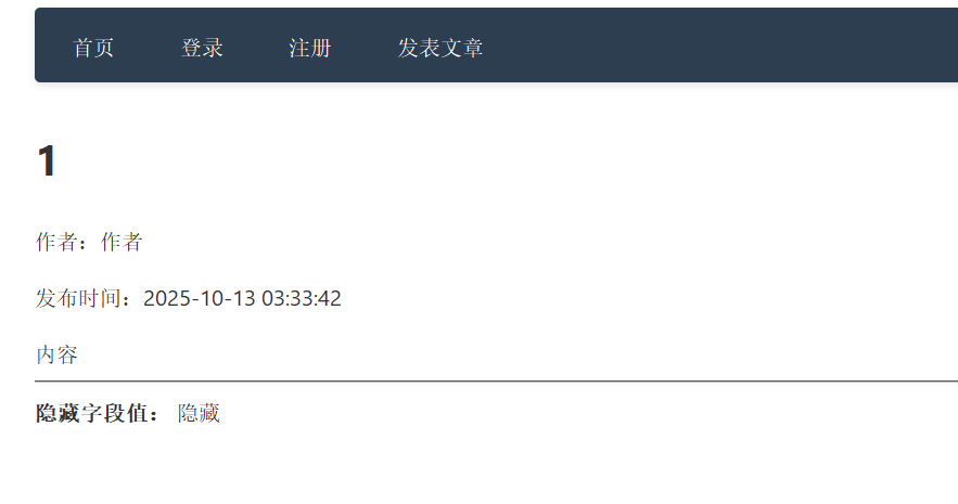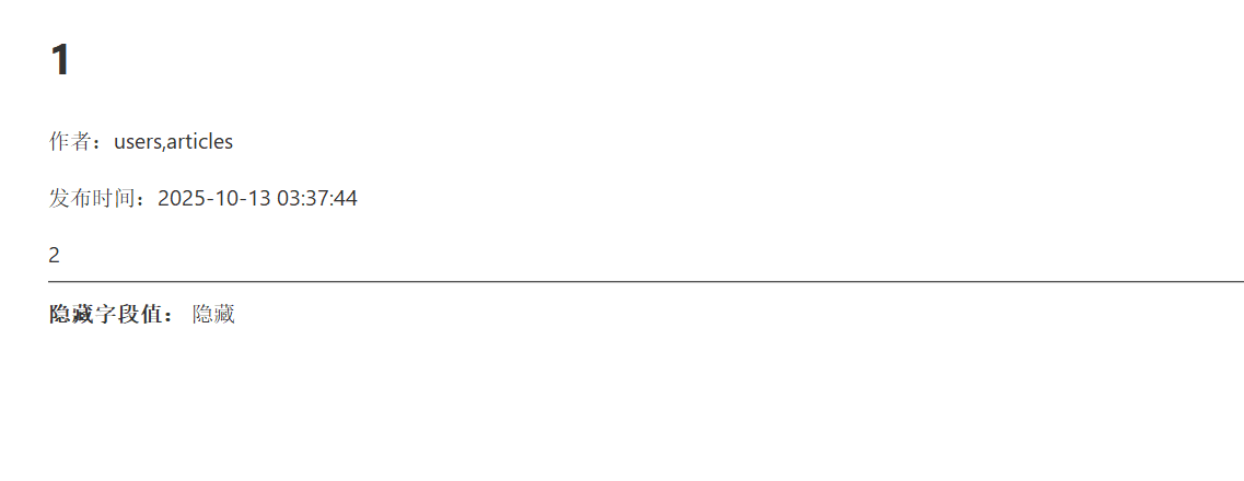观察这个文章 发现有五个值 标题 内容 作者 隐藏字段 时间
