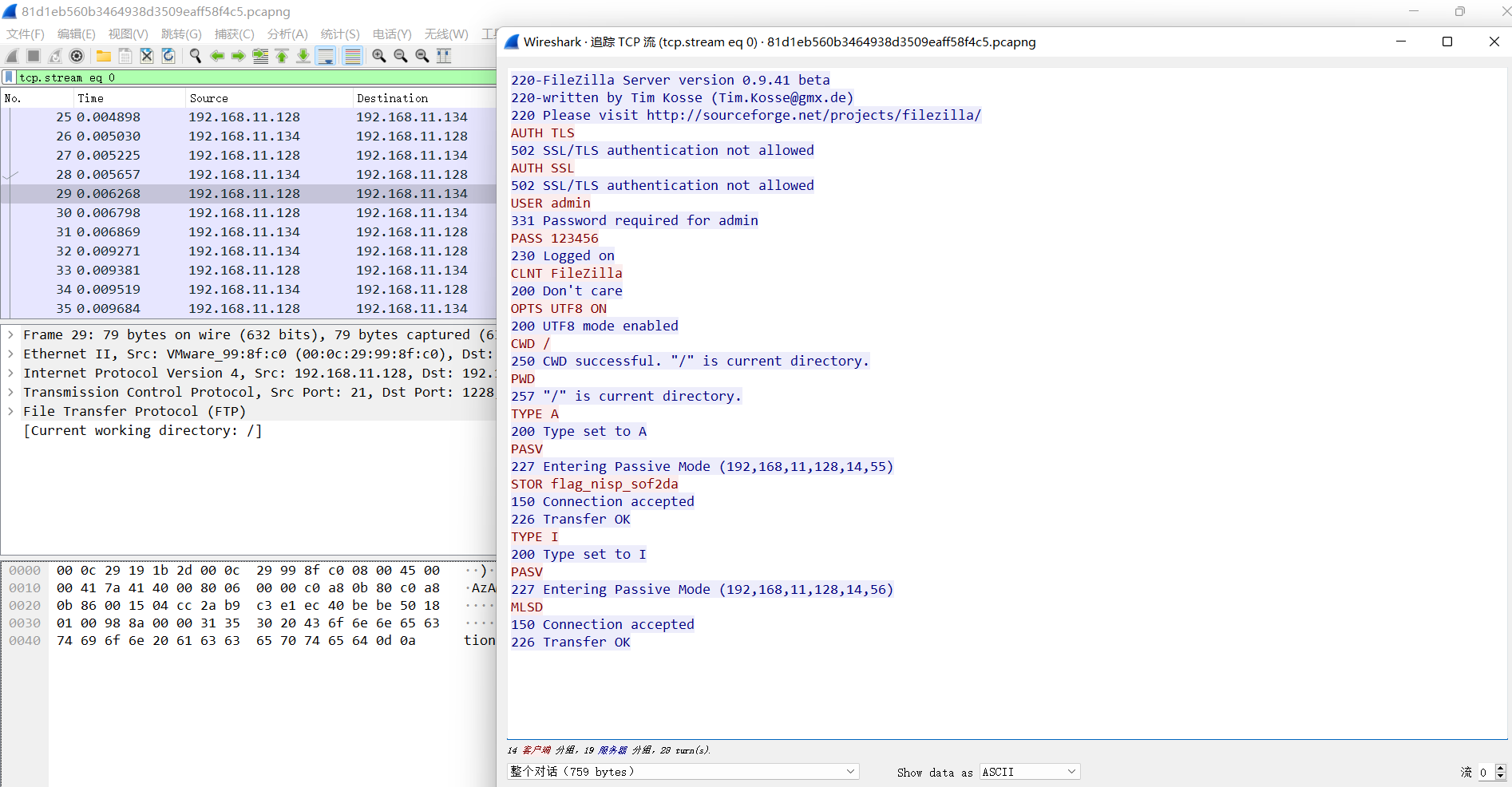追踪ftp流得到了flag