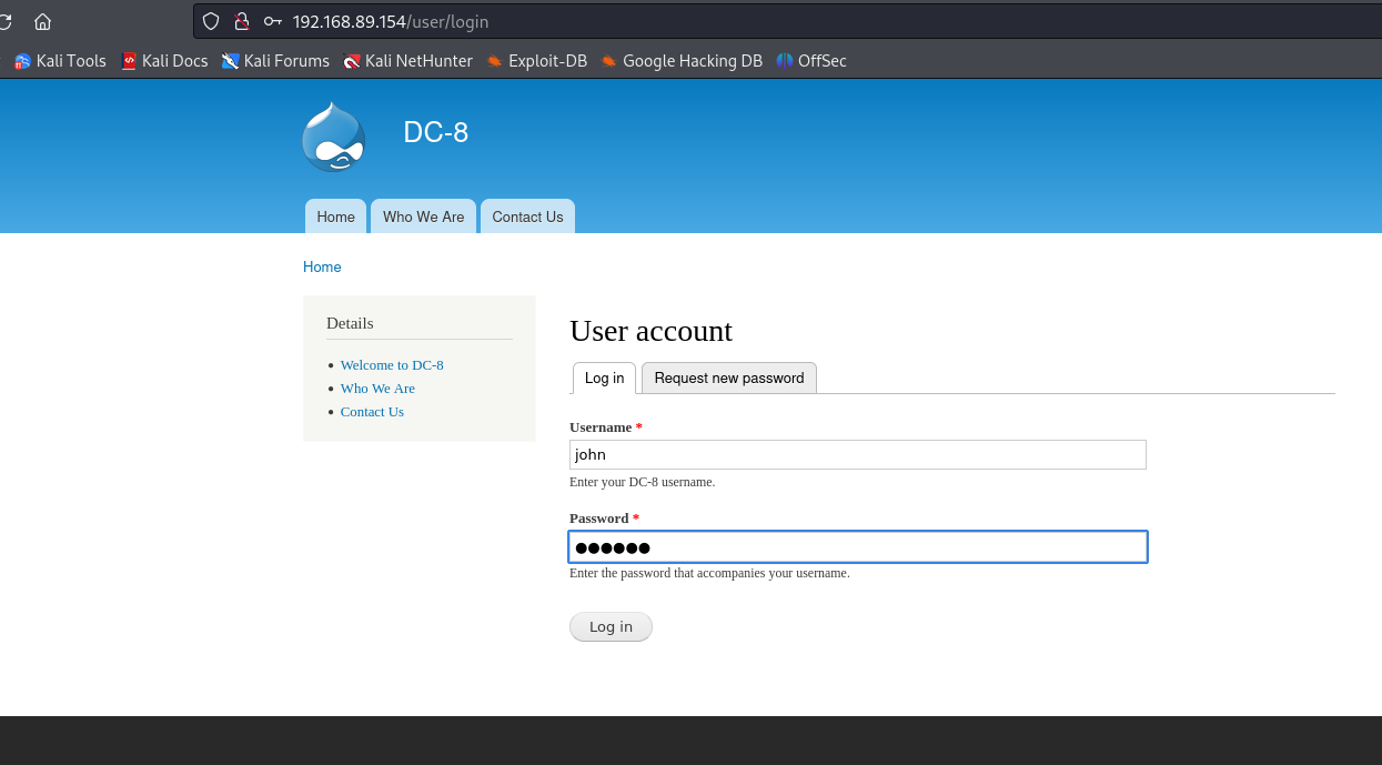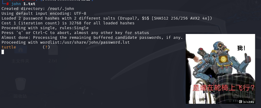 将密码复制下来 因为前面探测到了是drupal的cms kali上专门的爆破工具 john