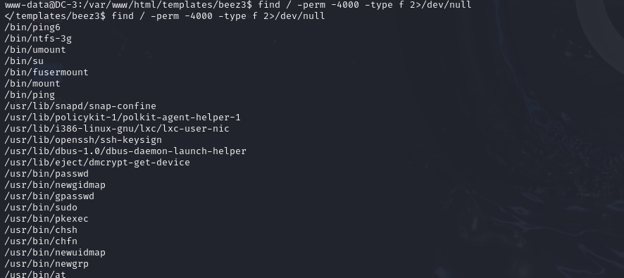 find / -perm -4000 -type f 2>/dev/null