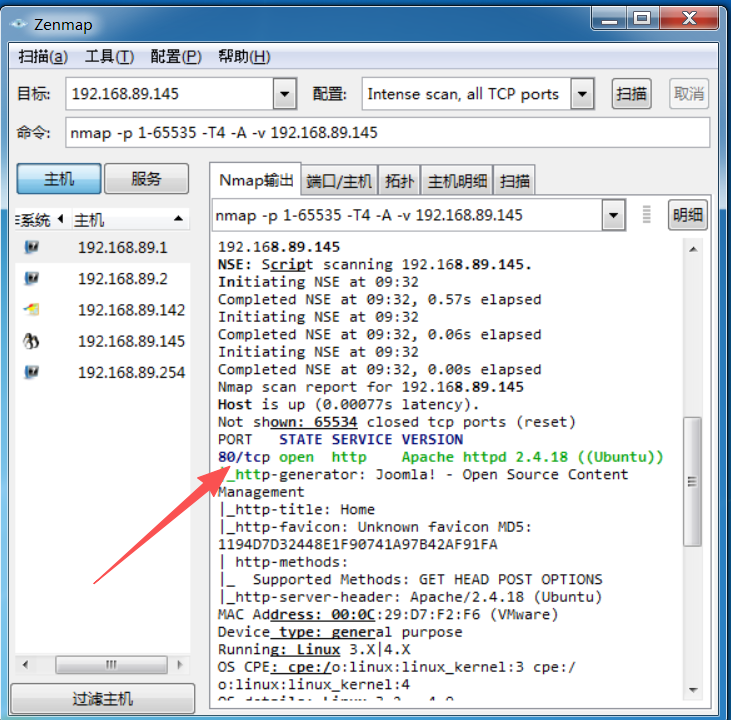对目标靶机进行端口扫描