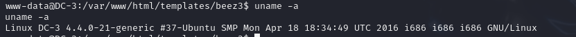 Linux DC-3 4.4.0-21-generic #37-Ubuntu SMP Mon Apr 18 18:34:49 UTC 2016 i686 i686 i686 GNU/Linux