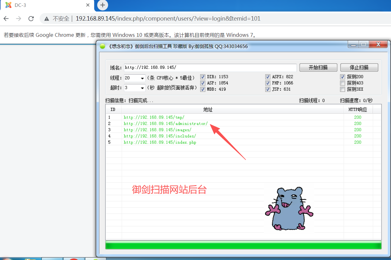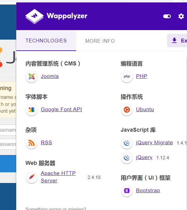 发现只有administrator可以访问 是一个登陆页面 我们用插件查看用的是什么cms系统