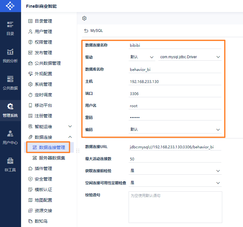 "jdbcUrl": "jdbc:mysql://biz01:3306/behavior_bi?useUnicode=true&characterEncoding=utf-8&useSSL=false",