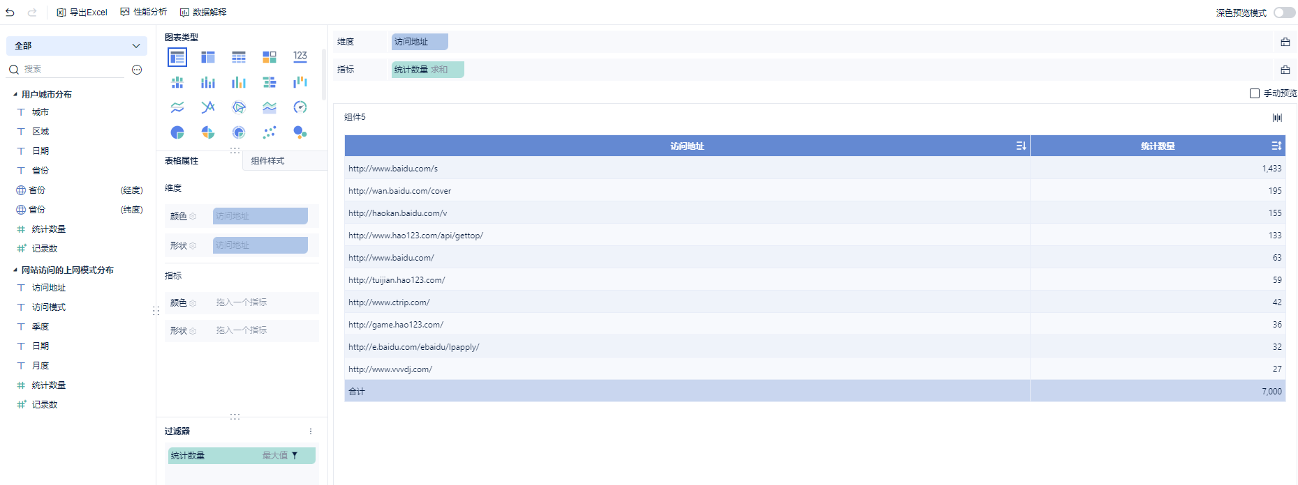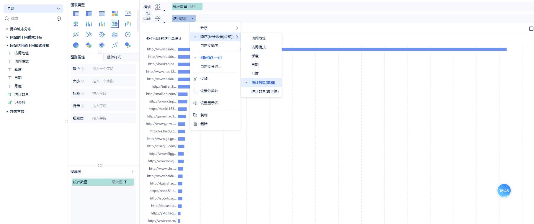 - 为企业发展提供数据支撑, 分析每个网站的访问情况