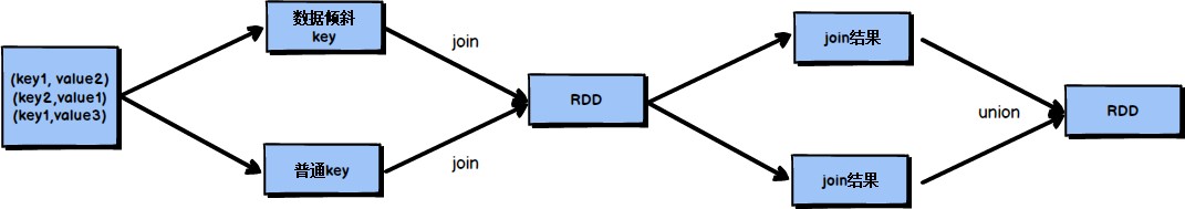当由单个 key 导致数据倾斜时,可有将发生数据倾斜的 key 单独提取出来,组成一个RDD,然后用这个原本会导致倾斜的 key 组成的 RDD 跟其他 RDD 单独 join,此时,根据