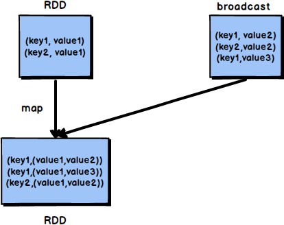 由于Spark 的广播变量是在每个Executor 中保存一个副本,如果两个RDD 数据量都比较大, 那么如果将一个数据量比较大的 RDD 做成广播变量,那么很有可能会造成内存溢出。
