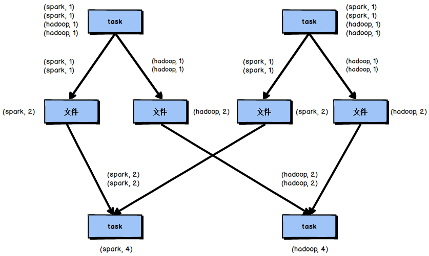 增加 shuffle read task(任务) 的数量,可以让原本分配给一个 task(任务) 的多个key 分配给多个 task(任务), 从而让每个task(任务) 处理比原来更少的数据。举例来说,如果原本有 5 个 key,每个 key 对应 10 条数据,这 5 个 key 都是分配给一个 task(任务) 的,那么这个 task(任务) 就要处理 50 条数据。而增加了shuffle read task(任务) 以后,每个 task(任务) 就分配到一个key,即每个 task(任务) 就处理 10 条数据,那么自然每个 task(任务) 的执行时间都会变短了。