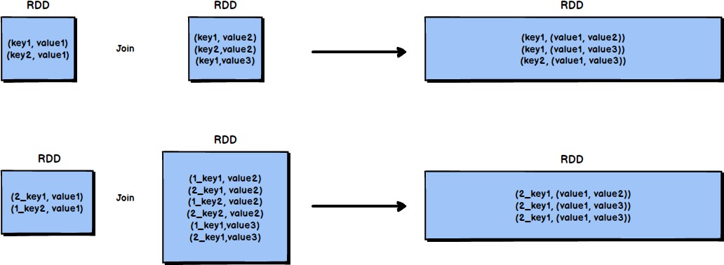如果在进行 join 操作时,RDD 中有大量的 key 导致数据倾斜,那么进行分拆 key 也没什么意义,此时就只能使用最后一种方案来解决问题了,对于 join 操作,我们可以考虑对其中一个 RDD 数据进行扩容,另一个RDD 进行稀释后再 join。