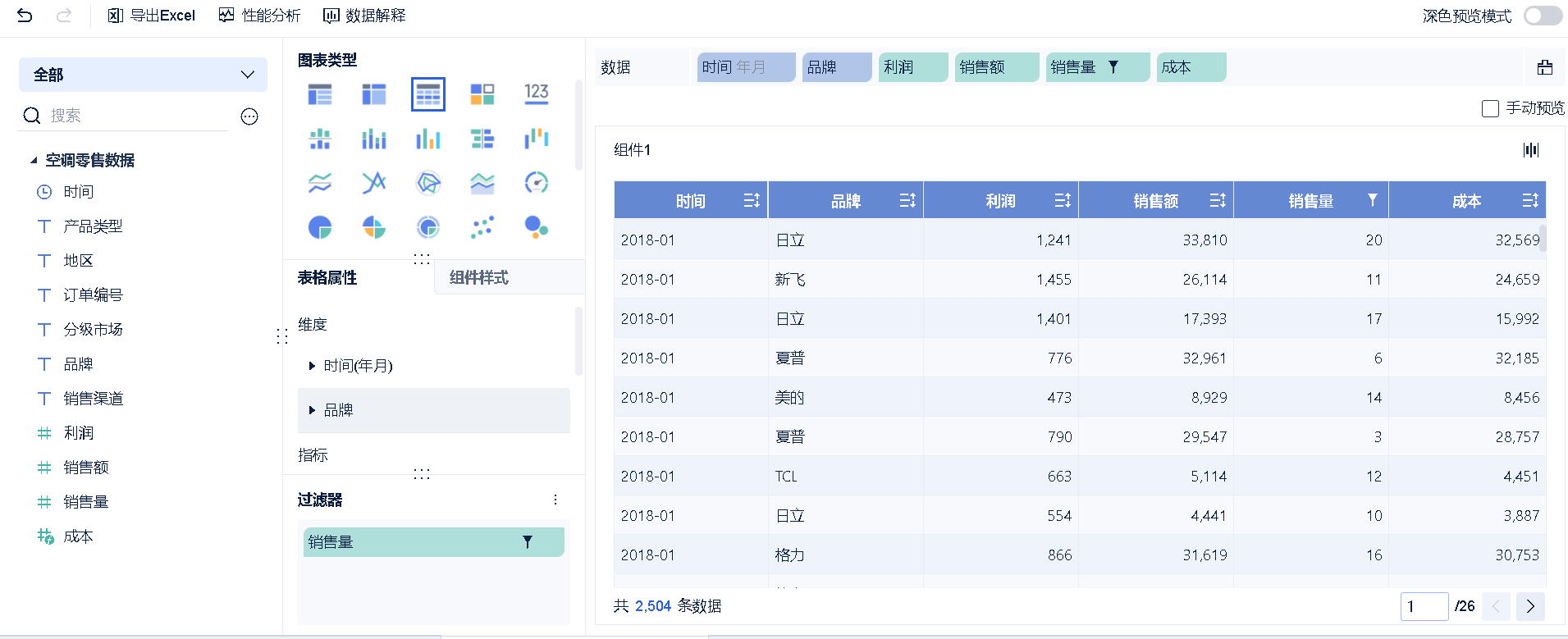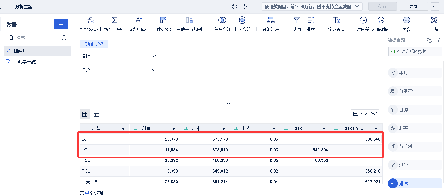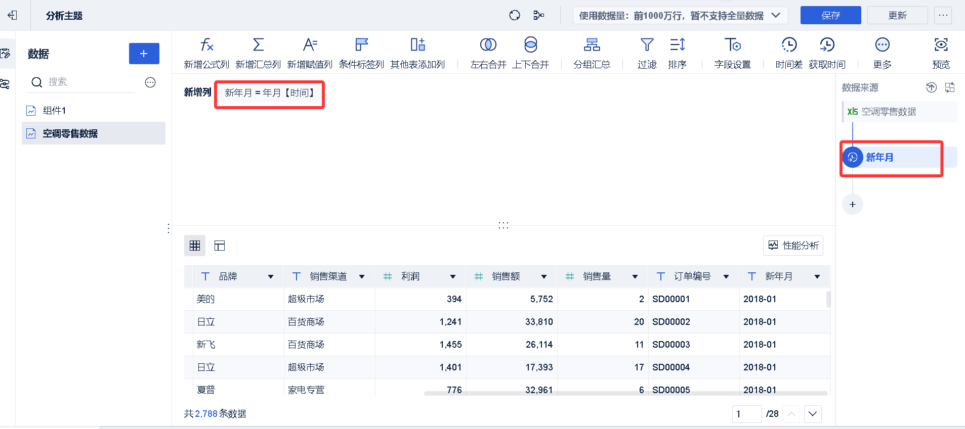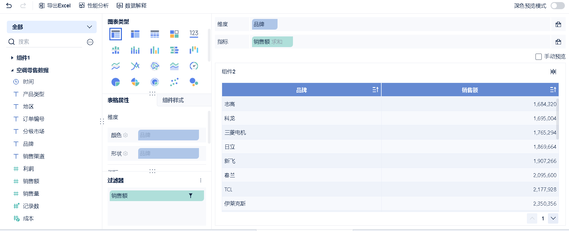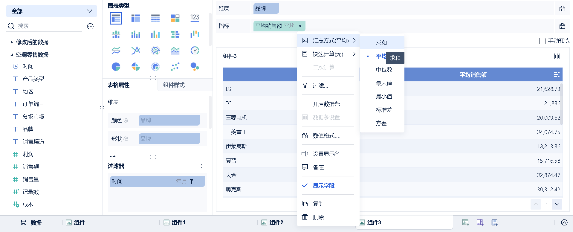 作业三:组件计算:完成空调零售分析之条件过滤分析这个案例。