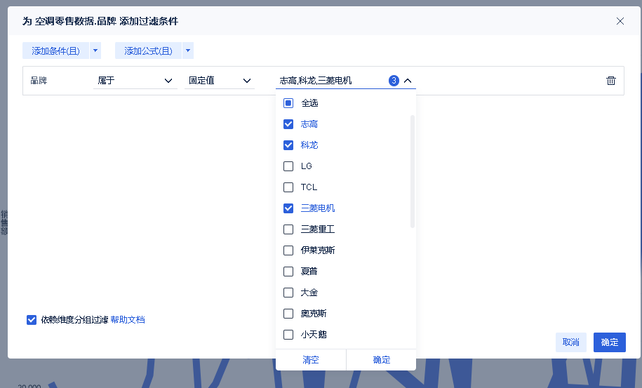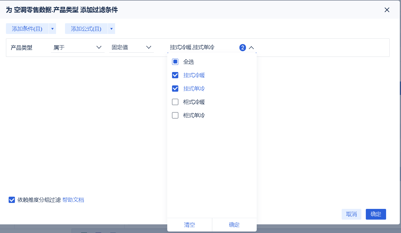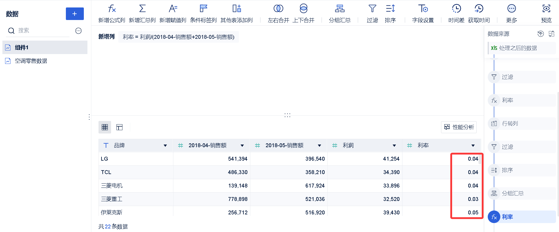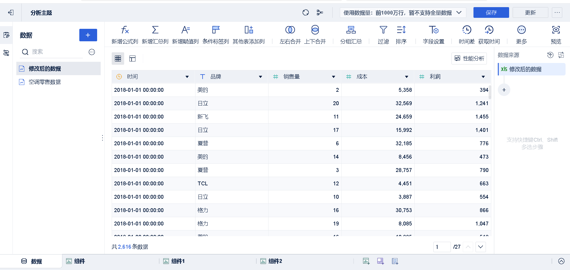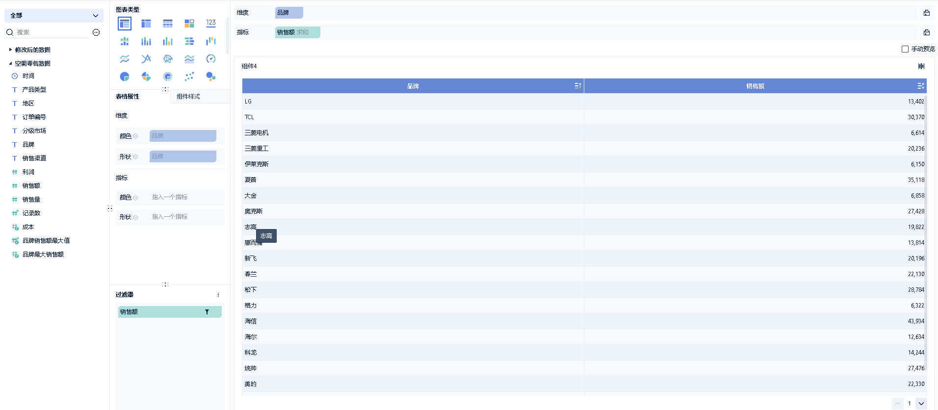 作业三:组件计算:完成空调零售分析之条件过滤分析这个案例。