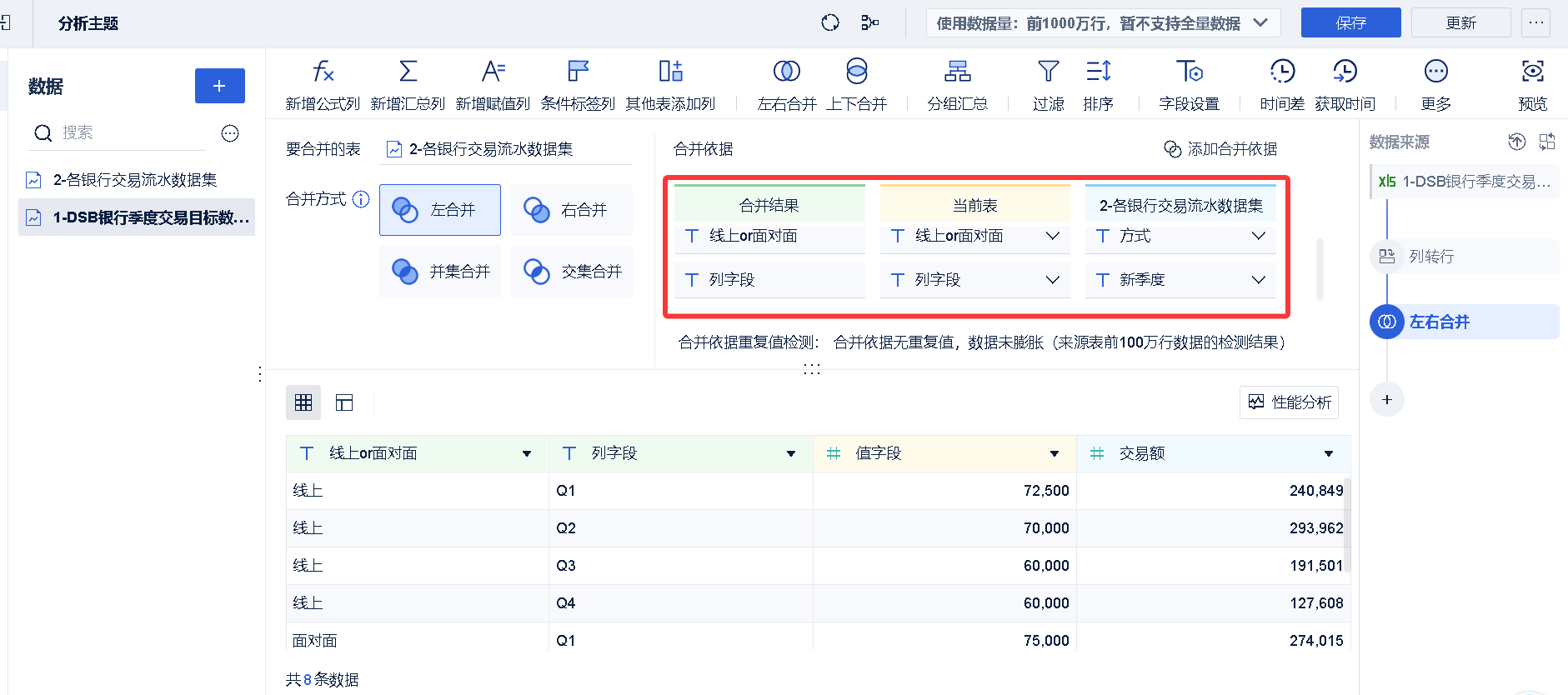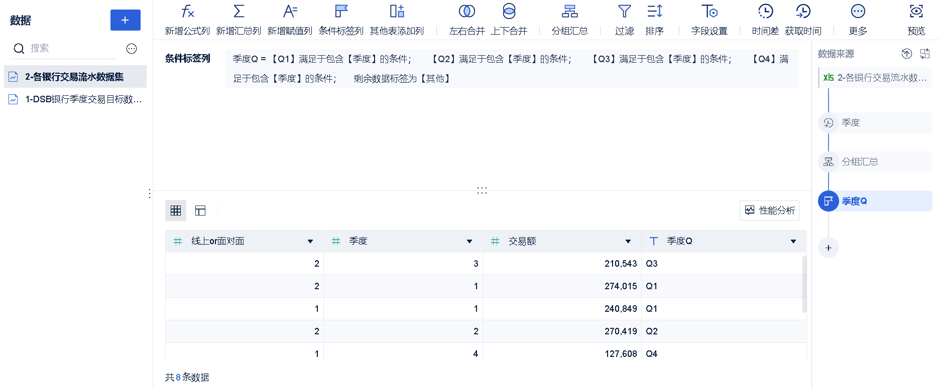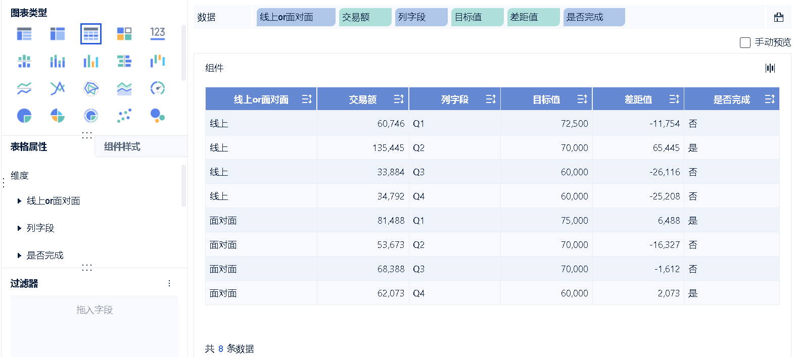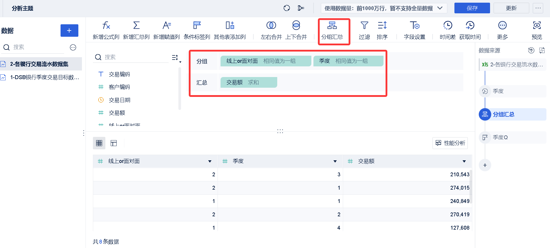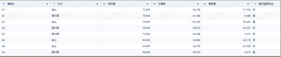需要将明细表变为汇总表,汇总每一个季度,实际交易额,再跟目标表关联。