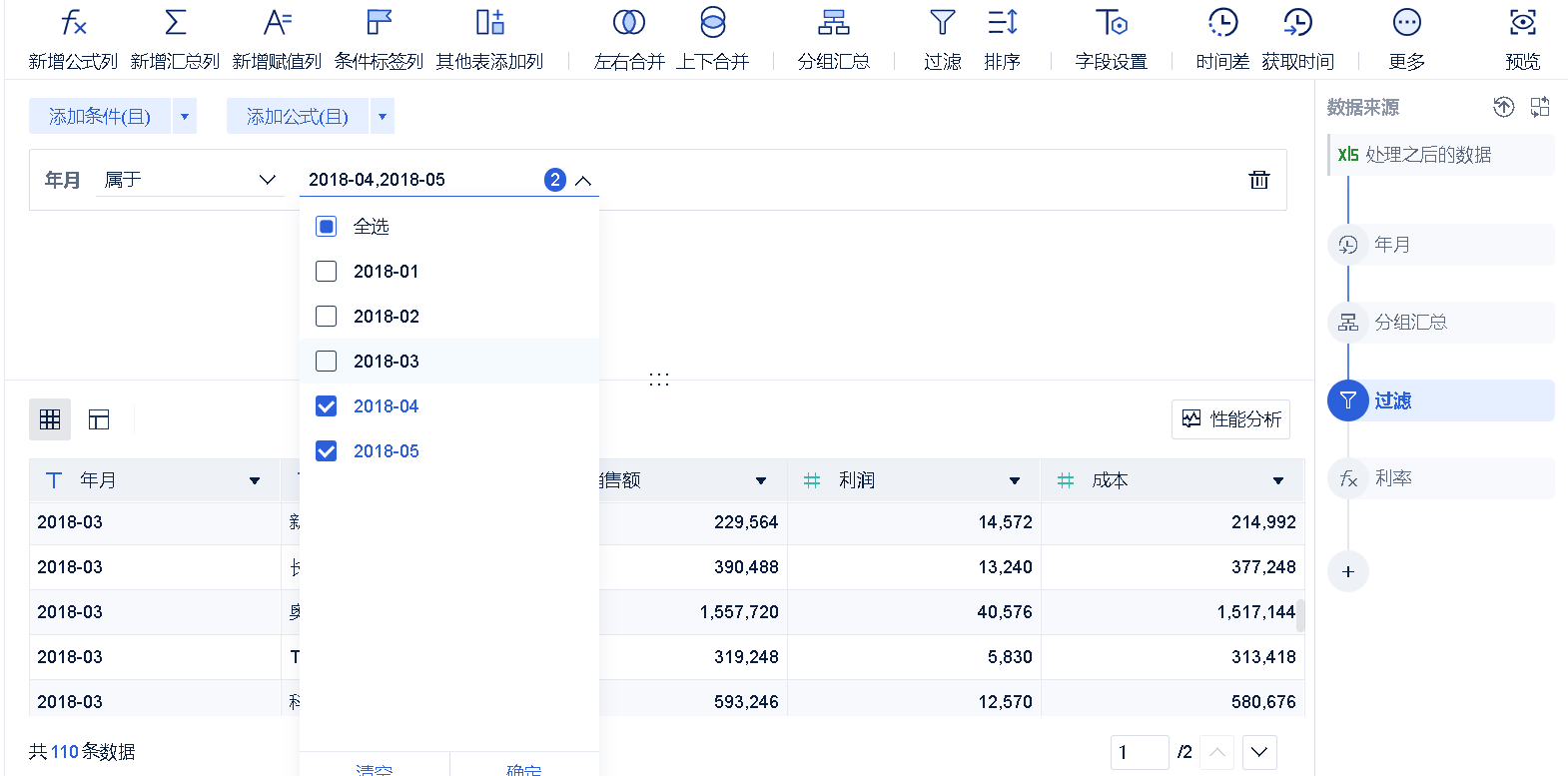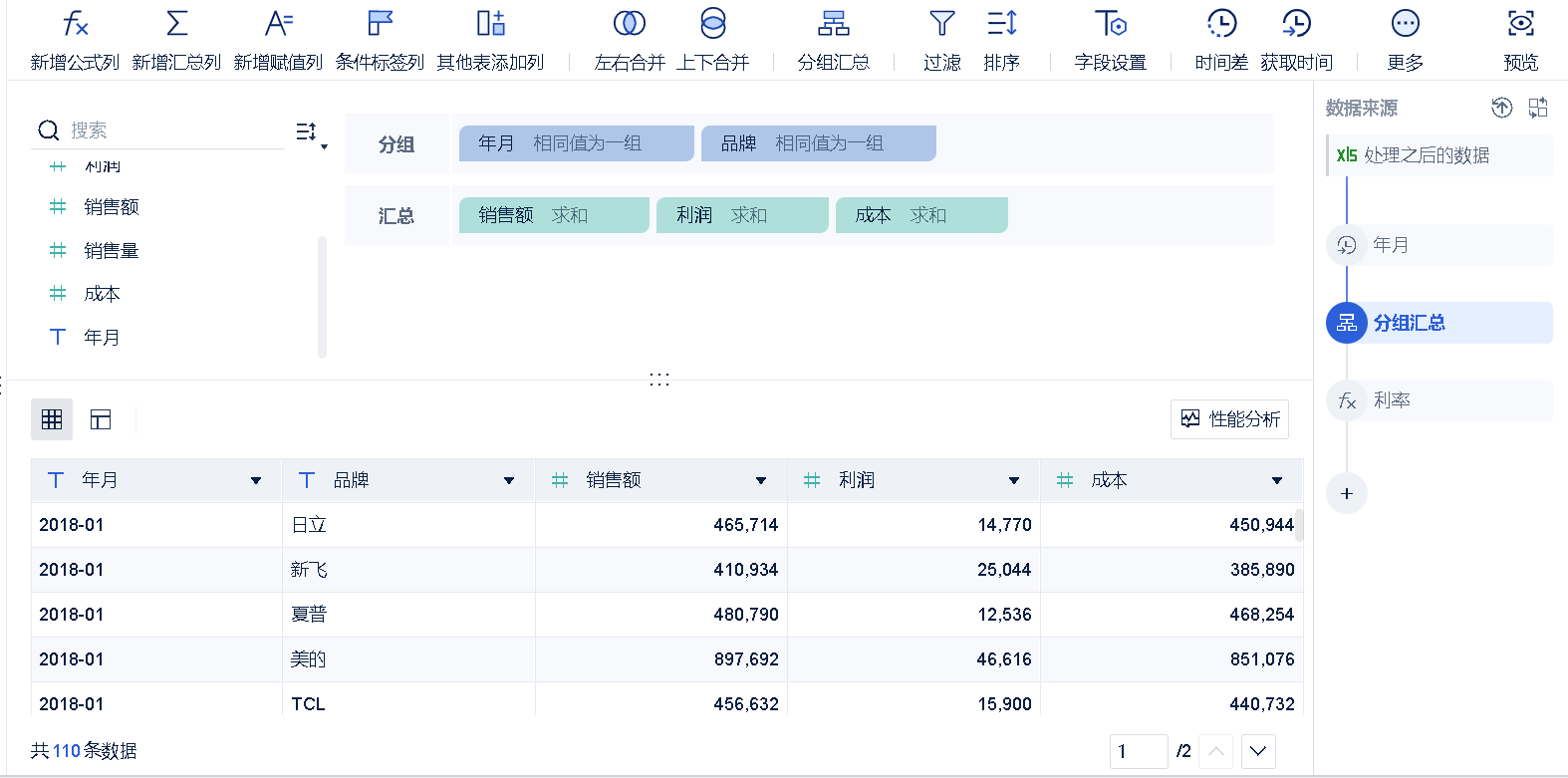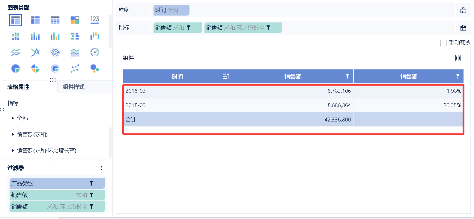 遇到了一个问题,一个品牌,4 月份有销售额,5 月份也有销售额,分为两条显示了。