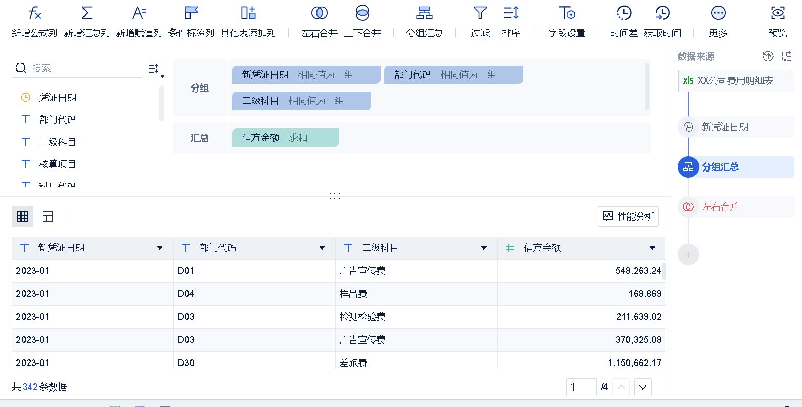 题目要求使用分组表,但是分组表无法过滤明细数据,我需要先过滤明细数据,那么有两个办法,第一个办法修改【数据】,但是这个数据修改之后后面的一些题目还需要使用原来的数据,所以不可动,那么我可以先整一个明细表,把数据处理一下,进行导出。