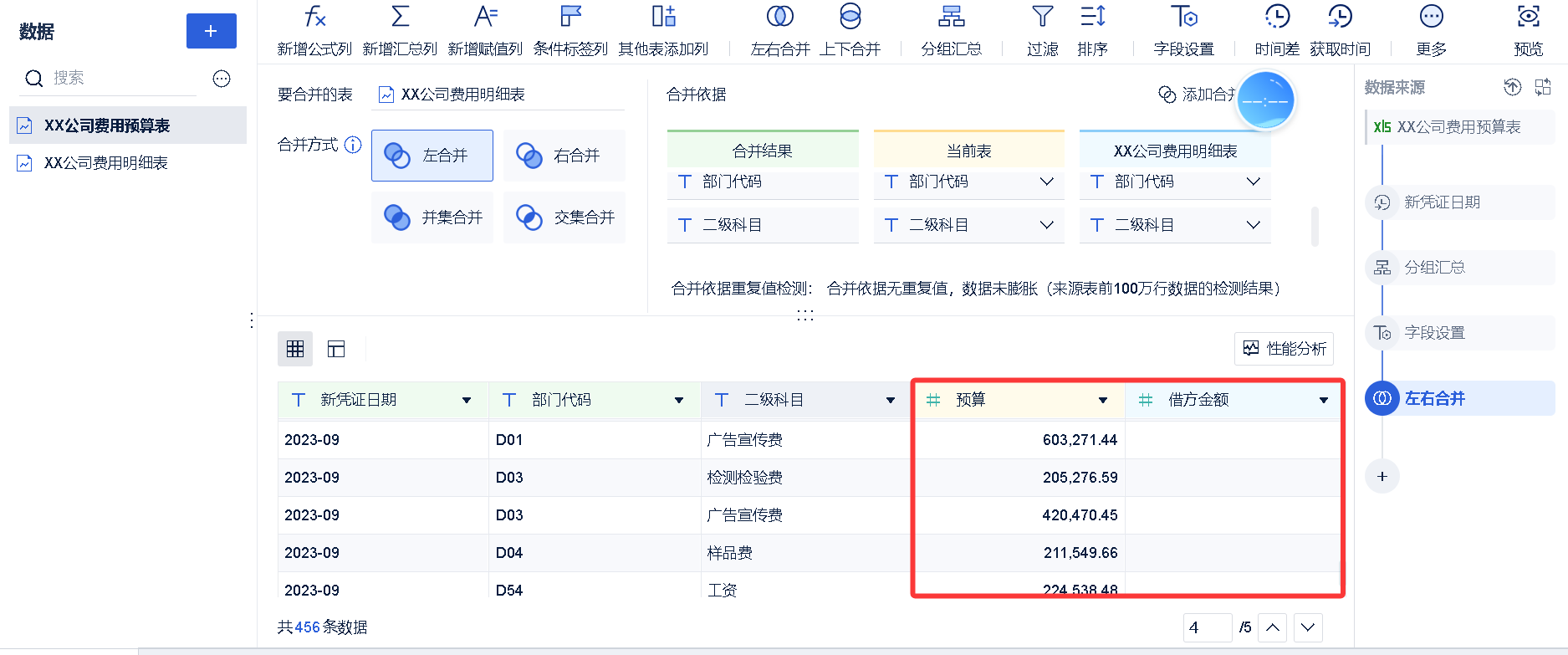 由于有 6 个月的数据,只有预算,没有实际的消费,所以应该是预算表关联明细表。